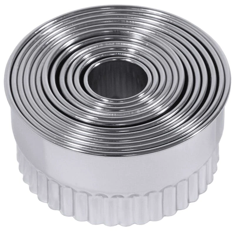 2x Contacto Ausstechsatz, Rund, Gewellt 12-teilig, Edelstahl, Durchmesser: 2,5 Cm – 10,5 Cm, Höhe: 5 Cm