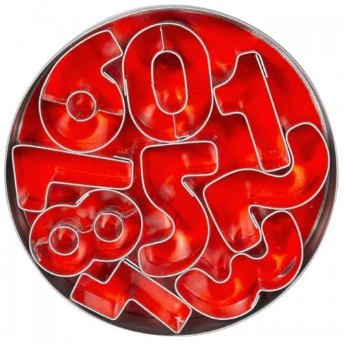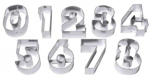 Ausstechformen ‘Weihnachten’ aus Weißblech, fünf Stück in einer Dose (28,5 x 7 cm), Motive: Engel, Herz, Tannenbaum, Stern und Glocke