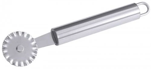 5x Ravioliausstecher, rund Serie POLARIS, mit seidenmatt poliertem Griff aus Edelstahl 18/10, Ausstecher aus hartverchromten Zinkguss Länge: 15,5 cm, Durchmesser: 6 cm