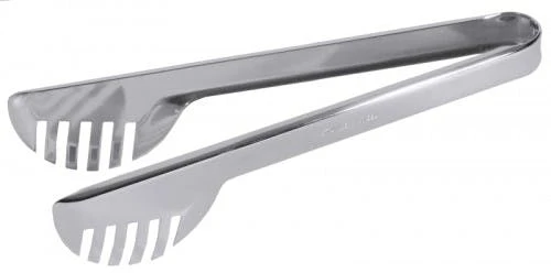 Allzweckzange aus Edelstahl 18/0, hochglänzend, mit Feder und Verschlussschieber, dekorative Greiferform aus Nylon ermöglicht einen kratzfreien Einsatz in beschichteten Kochgeschirren, spülmaschinengeeignet, temperaturresistent bis +220C schwere Qualität Länge: 23 cm