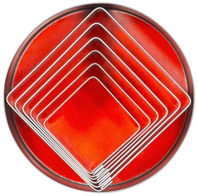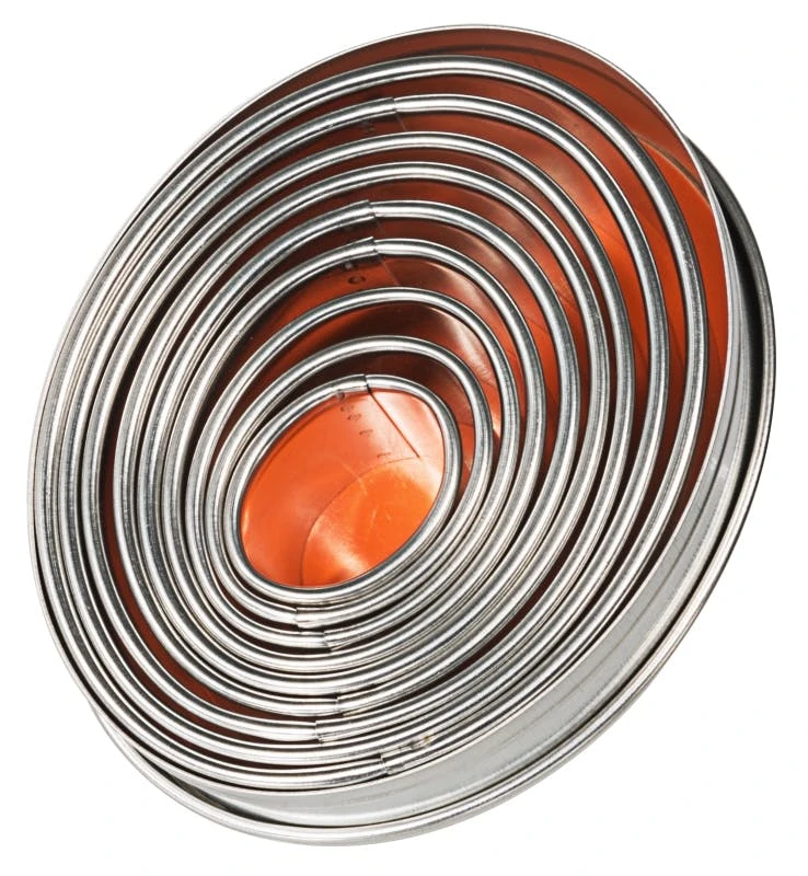 Ausstecher, oval, glatte Form, aus Weißblech, neun Stück komplett in einer Dose