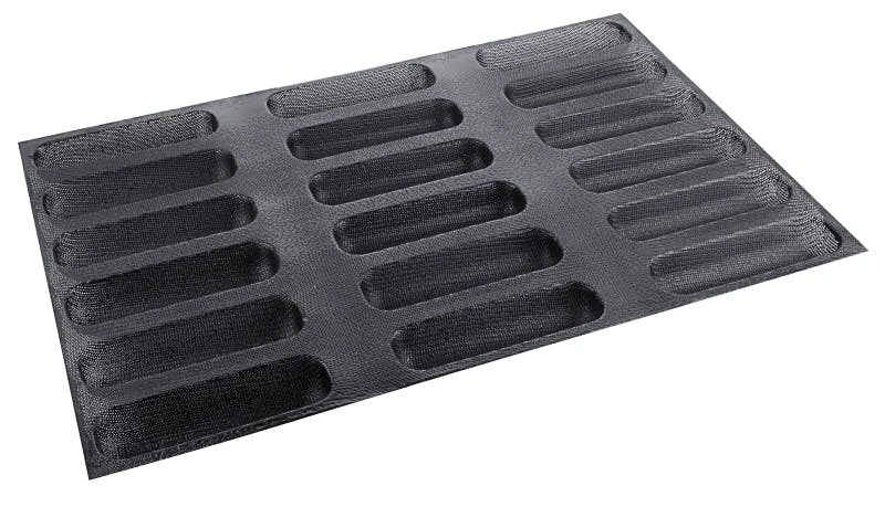 Silikon-Backmatte Hot Dog, aus schwarzem glasfaserverstärkten Silikon, temperaturresistent von -40°C bis +280°C, für 60 x 40 cm Backbleche