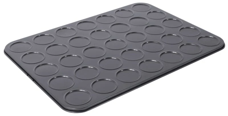 Macaronform, aus 0,38 mm starkem Stahl, PTFE antihaft-beschichtet, nicht spülmaschinengeeignet, 35 Formen mit Ø 36 mm