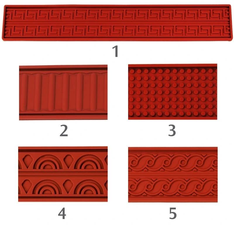 Tortenreliefmatten, aus rotem Silikon, einsetzbar von -60°C bis +230°C, klassische Friese für den Tortenrand und für das Blech, spülmaschinengeeignet
