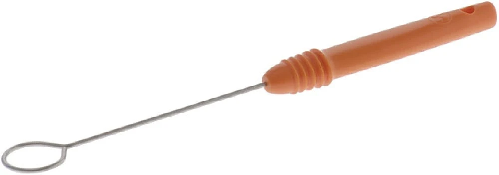 Pralinentunkgabel aus Edelstahl mit Kunststoffgriff (ABS). ++ Ausführung: rund 20mm ++ Material: Edelstahl ++ Griff: orangener Kunststoff (ABS) ++