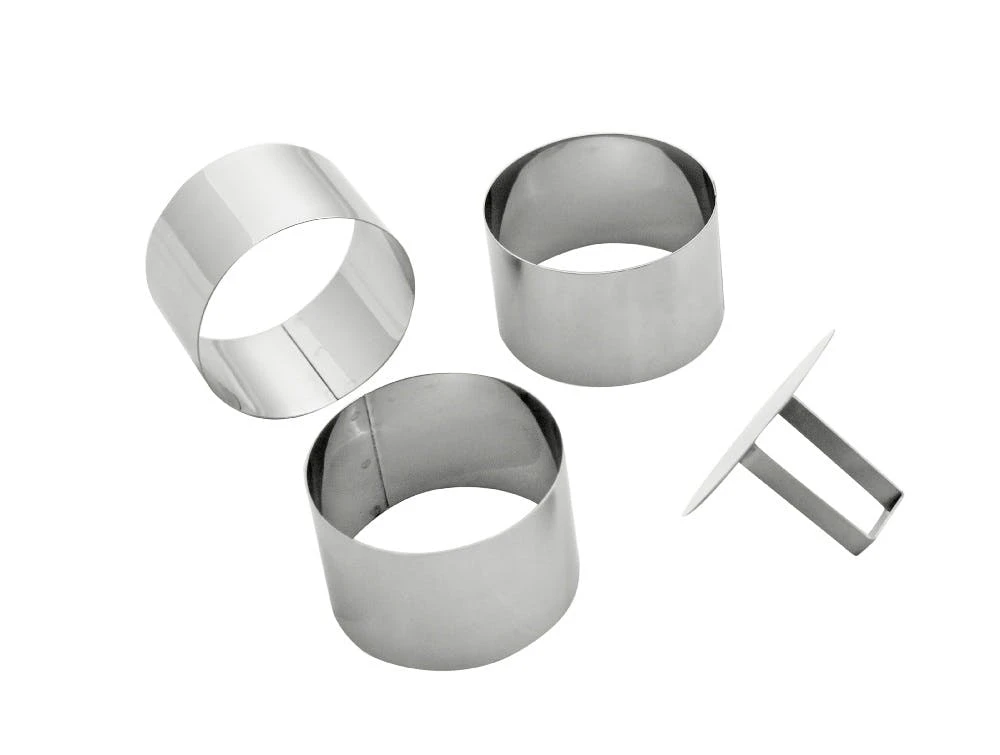 Schaumspeiseringe aus Edelstahl im 4-teiligen Set. Der Set besteht aus 3 Formen und einem Drücker. ++ Ausführung: Herz ++ Höhe: 45mm ++ Abmessungen/Maße: 75mm ++ 4-teilig (3 Formen + 1 Drücker) ++