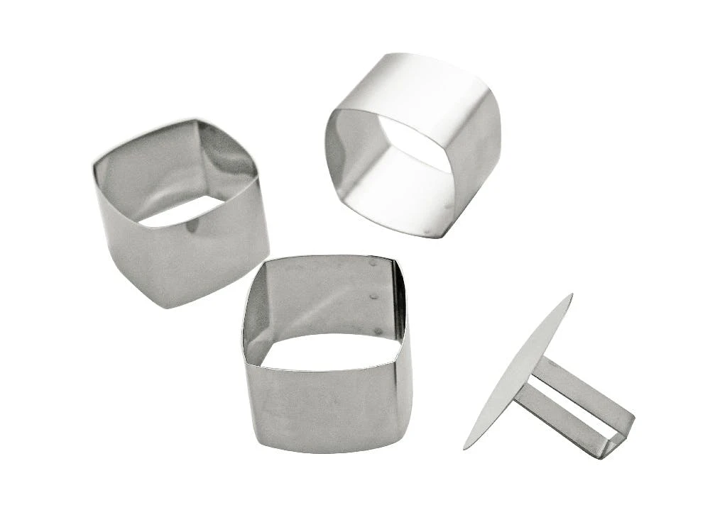 Schaumspeiseringe aus Edelstahl im 4-teiligen Set. Der Set besteht aus 3 Formen und einem Drücker. ++ Ausführung: Rechteck abgerundet ++ Höhe: 45mm ++ Abmessungen/Maße: 68mm ++ 4-teilig (3 Formen + 1 Drücker) ++
