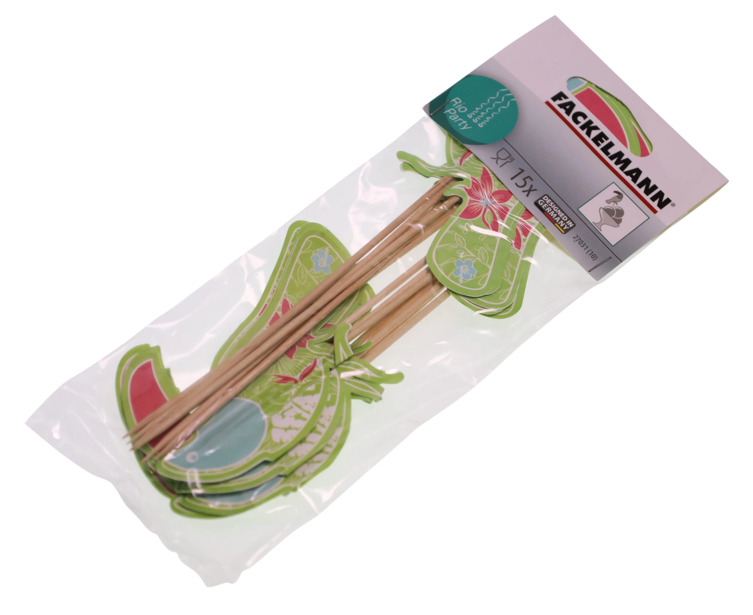 FACKELMANN 27031 Rio Party Partypicker Cocktailspieße Tropical • Material: Birke/Papier • Maße: 190x55mm • Inhalt: 15Stück • Motiv: Tukan • Farbe: bunt
