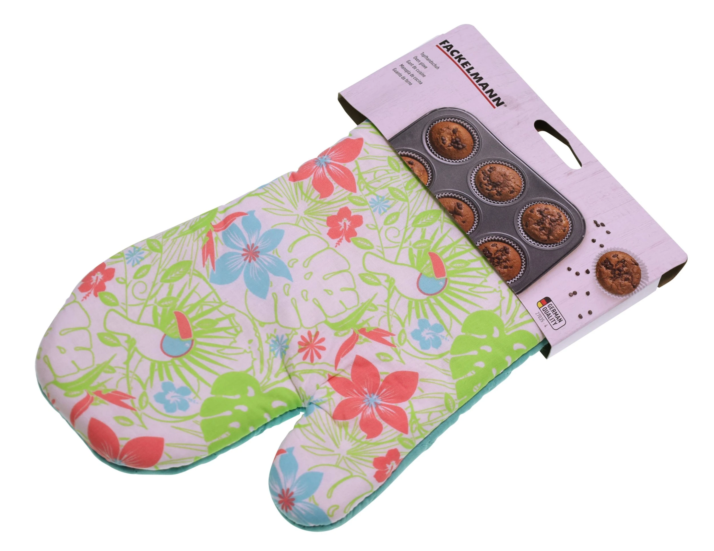 FACKELMANN 27035 Tropical Topfhandschuh • Material: Baumwolle • Maße: 280x180x10mm • Waschbar bei 40°C • Motiv: Tropical-Muster / blau • Farbe: bunt bedruckt