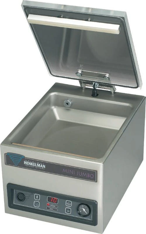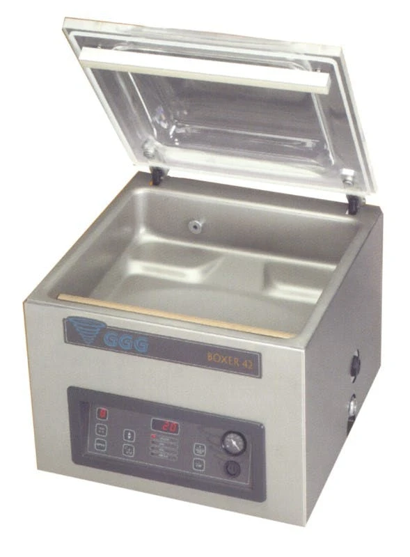 Vakuum-Gerät (Tischmodell) 450X340X370mm, aus Edelstahl Schweißleiste herausnehmbar, Acrylglasdeckel, Kapazitat Pumpe 4m³/h, Zyklus: 25-40 Sec., 0,3 kW/ 230V-1-50/ 60 Hz Kammermaß: 310x280x85mm