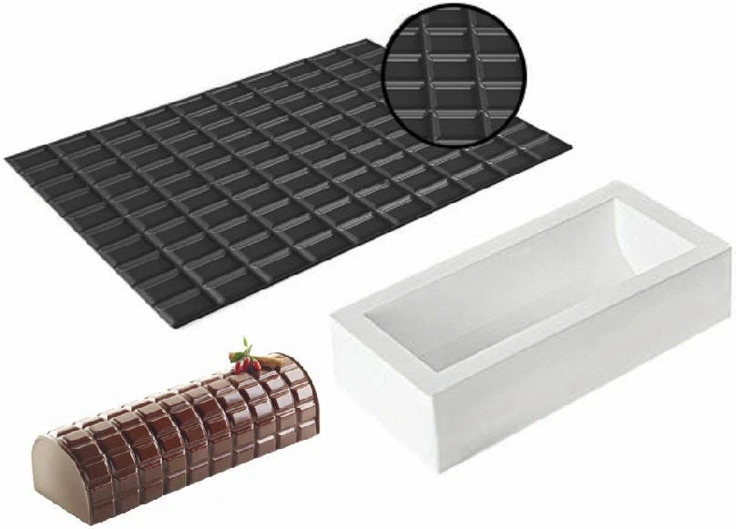 Das Set besteht aus einer Silikonform und einer Silikonmatte mit der Sie das Dekor auf das Produkt bekommen. Das Set ist geeignet für Temperaturen von -60°C bis +230°C. Ebenfalls können Sie die Form in eine Mikrowelle legen und in der Spülmaschine waschen. Abmessung Form: 250 x 90 x 70 mm, ca. 1,3 Liter Abmessung Matte: 250 x 185 x 6 mm.