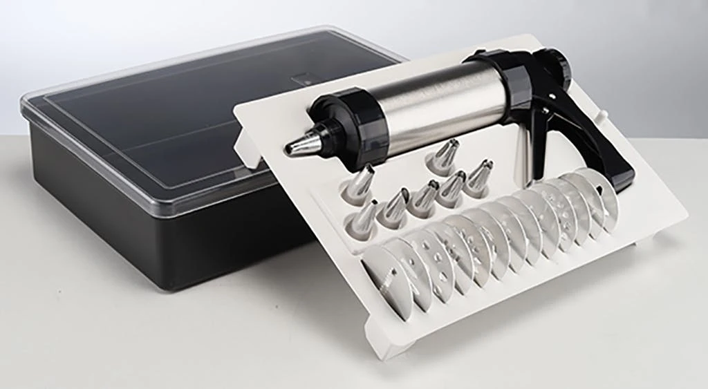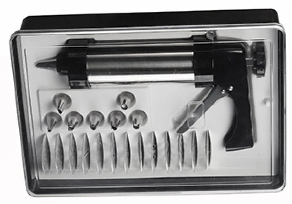 13 verschiedene Motivscheiben und 8 Spritzaufsätze