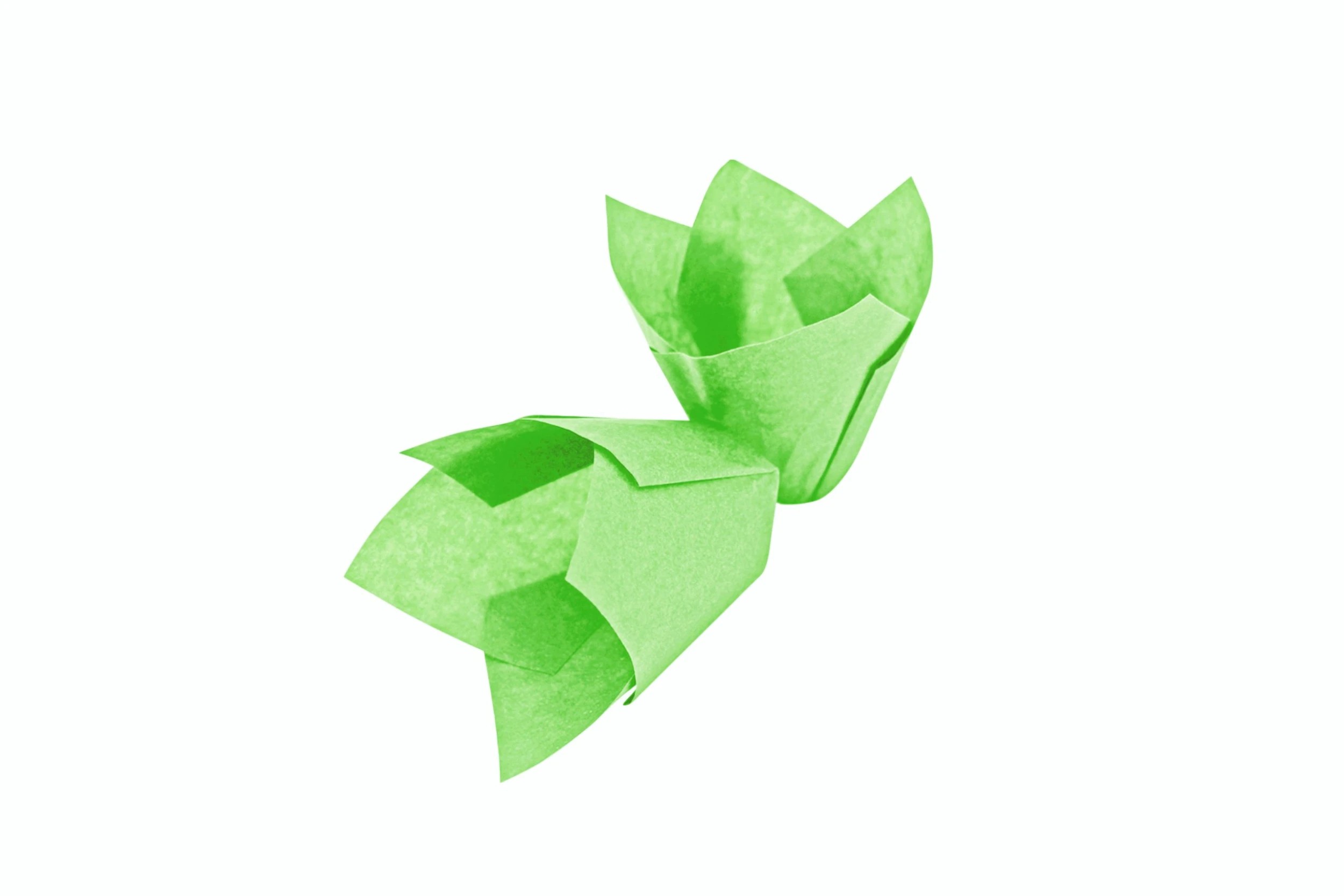 Muffin Form TULPE Farbe: grünMaterial: fettabweisendes Spezial-Papier Flächengewicht: ca. 50 g/m² Boden-Durchmesser: 50 mm Höhe: 55 mm Temperatur: bis max. 180°C Einheit: 1000 Stück